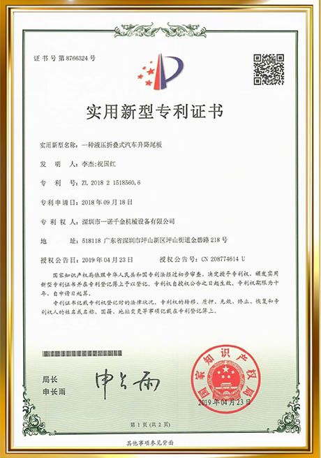 Shenzhen Yinuo Qianjin Machinery Equipment Co., Ltd. is a professional manufacturer of truck tailgate lifts and special vehicle-mounted hydraulic superstructure equipment. The company has assembled a team of senior professionals with over twenty years of experience in the industry. Over the years, we have accumulated rich experience in the durability, reliability, and safety of various hydraulic tailgates; the company has obtained 28 utility model patents and is certified as a National High-tech Enterprise; and has provided product services to over 10,000 customers. We sincerely look forward to cooperating with customers all over the world, providing you with complete logistics handling solutions and customized product services. Welcome to contact us for inquiries and experience our company culture—integrity first, keeping promises is paramount!