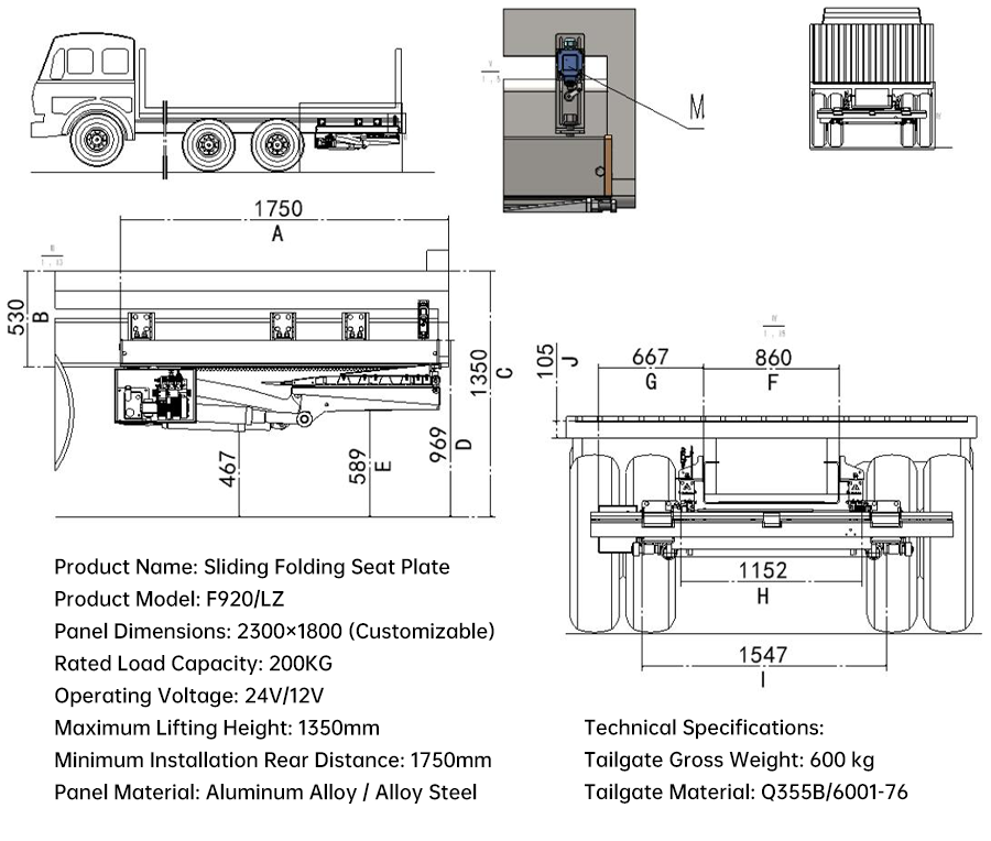 Key Features: Utilizes aluminum alloy rails and a hydraulic motor-driven gear and rack sliding mechanism, allowing the folded tailgate to be concealed beneath the vehicle with minimal modifications. Compatible with various vehicle types, including box trucks and refrigerated trucks, it meets the cargo transportation needs of both scenarios where a tailgate is required and those where it is not.